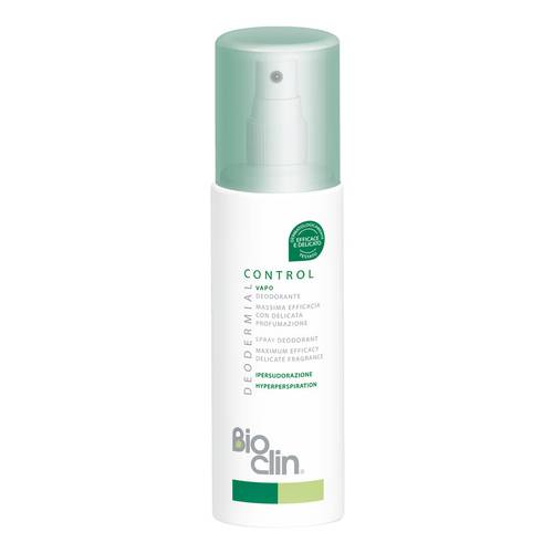 Bio clin DEODERMIAL C O N T R O L VAPO Deodorante spray indicato per contrastare l’ipersudorazione nel pieno rispetto del pH cutaneo. Formula arricchita con vitamina E, F e Aloe barbadensis. Normalizza il processo di sudorazione, previene e neutralizza i cattivi odori. Non lascia residui su pelle e vestiti, azione deodorante di lunga durata.