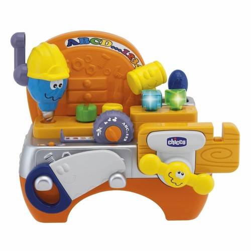 Banco da falegname, completo di 8 strumenti da lavoro che aiutano il bambino a sviluppare la coordinazione manuale e stimolano la sua immaginazione e creatività. Il gioco diffonde effetti luminosi e sonori che riproducono i veri rumori degli attrezzi di una falegnameria, offre 3 modalità di gioco e varie melodie, canzoncine e frasi in italiano e in inglese. Pile: 3 x AA 1.5 V.