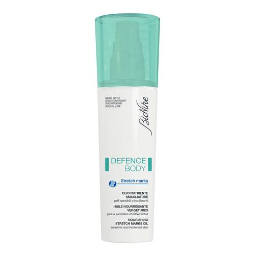 DEFENCE BODY OLIO NUTRIENTE SMAGLIATURE Olio nutriente corpo dalla texture emolliente ma non untuosa, ideale per il massaggio prolungato e indicato durante diete, gravidanza, intensa attività fisica. Grazie alle proprietà rinforzanti delle vitamine (B5 ed E) e dell’olio di mandorle dolci, favorisce il rassodamento e la compattezza della pelle, migliorando la naturale elasticità cutanea.