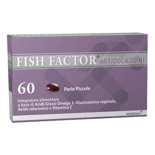 Integratore alimentare a base di Acidi Grassi Omega 3, Glucosamina cloridrato, Acido ialuronico e Vitamina C. La Vitamina C contenuta Fish Factor Articolazioni favorisce la normale formazione del collagene per la funzionalità delle ossa e cartilagini.