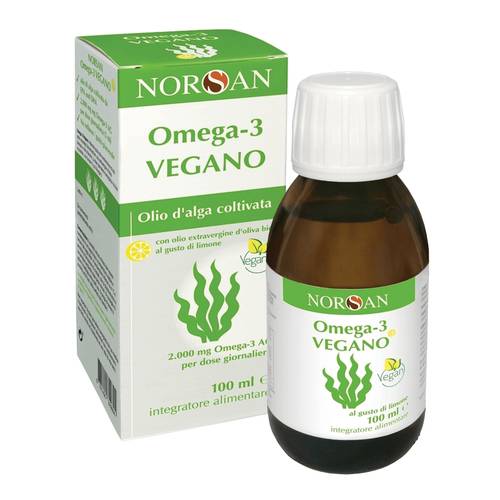 L'Omega-3 Vegano Norsan nasce dalla combinazione di olio vegetale d'alga coltivata, olio extravergine d'oliva biologico e olio di limone. L'alga utilizzata ha un altissimo contenuto di EPA e DHA. Sono sufficienti 5 ml al giorno (un cucchiaino da caffè) per assumere 2.000 mg di acidi grassi Omega-3. È un'ottima alternativa all'olio di pesce, soprattutto per chi segue una dieta vegana o vegetariana.