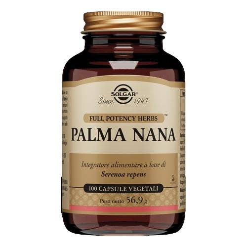 Integratore alimentare a base di Palma nana [Serenoa repens (W. Bartram) Small] estratto lipidico di frutto e frutto polverizzato. La palma nana supporta la funzionalità della prostata e delle vie urinarie.