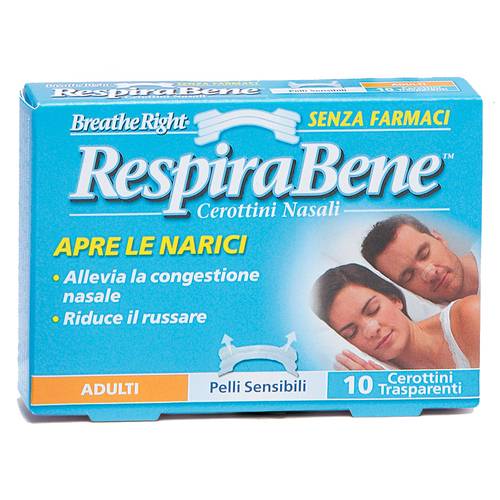 I cerottini nasali RespiraBene, se correttamente applicati sulla superficie del naso, attraverso una semplice azione meccanica e senza l’ausilio di medicinali, permettono immediatamente di respirare meglio. Ogni cerottino nasale è infatti costituito da strisce flessibili che sollevano delicatamente i passaggi nasali offrendo: