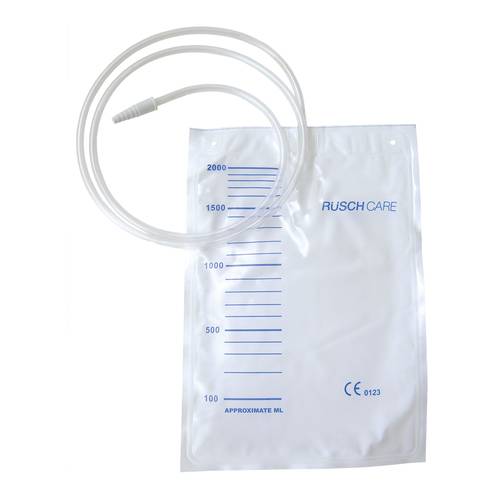 Sacca di raccolta per urina con tubo di connessione in PVC dotato di raccordo conico maschio per la connessione a tutti i tipi di cateteri vescicali, con relativo tappo di protezione. Dotato di valvola di non ritorno al fine di evitare il reflusso dell’urina in vescica ed indicazione del volume prestampato sulla sacca stessa, graduata 100ml, con sistema di aggancio al supporto del letto del paziente.