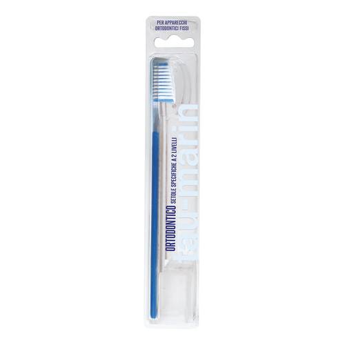 tau-marin ORTODONTICO Spazzolino pensato per garantire la massima igiene anche in presenza di apparecchi fissi. Specifico per raggiungere facilmente gli spazi interdentali difficili e gli interstizi tra le maglie dell’apparecchio per una pulizia più profonda e accurata.