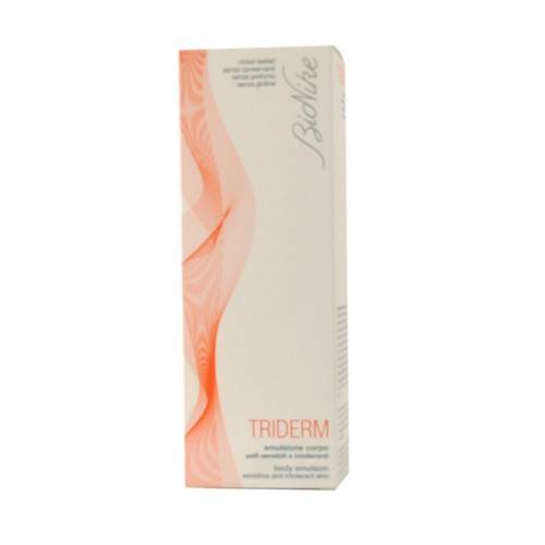 BioNike TRIDERM emulsione corpo Emulsione fluida che regala un prolungato effetto rinfrescante e lenitivo, alleviando fastidiose sensazioni di prurito. La speciale formula, realizzata senza l’utilizzo di conservanti e profumo, è Nickel tested ed è studiata appositamente anche per soggetti allergici con pelle molto sensibile, intollerante e facilmente arrossabile. La sua formulazione equilibrata aiuta a ricostituire la naturale barriera protettiva della pelle, anche di neonati, bambini e anziani.